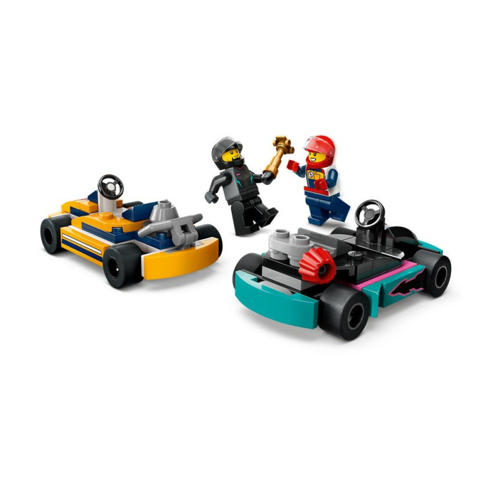 Заведите моторы, пришло время эпических гонок на картинге LEGO City! Наденьте шлем и выберите способ передвижения – ярко-оранжевый картинг или крутой бирюзовый? Забирайтесь на борт, пристегнитесь и приготовьтесь к драке с визгом шин! Кто выйдет победителем и получит заветный трофей победителя? Будьте готовы к гонке! Любители гоночных машинок смогут насладиться бесконечными приключениями с этим игровым набором LEGO City «Карты и гонщики» для детей от 5 лет и старше. Маленькие гонщики могут выбирать между двумя минифигурками гонщиков, а затем участвовать в захватывающих соревнованиях на оранжевых и бирюзовых мини-картах. Этот игрушечный гоночный набор для картинга станет забавным подарком для детей и включает в себя простое печатное руководство по сборке.