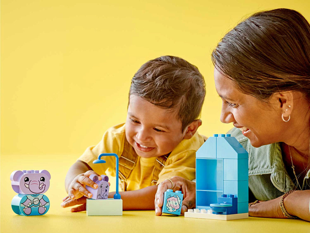 Помогите дошкольникам в возрасте от 18 месяцев и старше понять свои чувства по поводу мытья с помощью обучающей игрушки для малышей «Мои первые ежедневные процедуры: время купания» (10413). Этот игровой набор с животными поставляется с 2 игрушками-слонами — родителем и ребенком — а также ванной, душем и туалетом. Родители и дети дошкольного возраста присоединяются к своим новым друзьям-животным LEGO DUPLO в ванной, наслаждаясь веселой ролевой игрой по мытью ребенка, одновременно изучая важность процедур мытья. Эта игрушка для развития социальных эмоций включает в себя фигурку слоненка, который носит либо счастливое, либо грустное выражение, чтобы помочь малышам разыграть свои чувства во время мытья. Этот игровой набор для купания также является отличным способом завязать веселые разговоры с малышами о приучении к горшку.