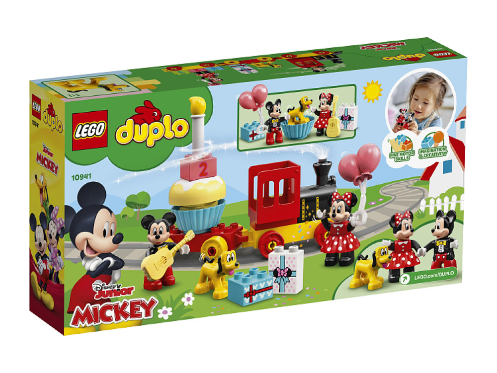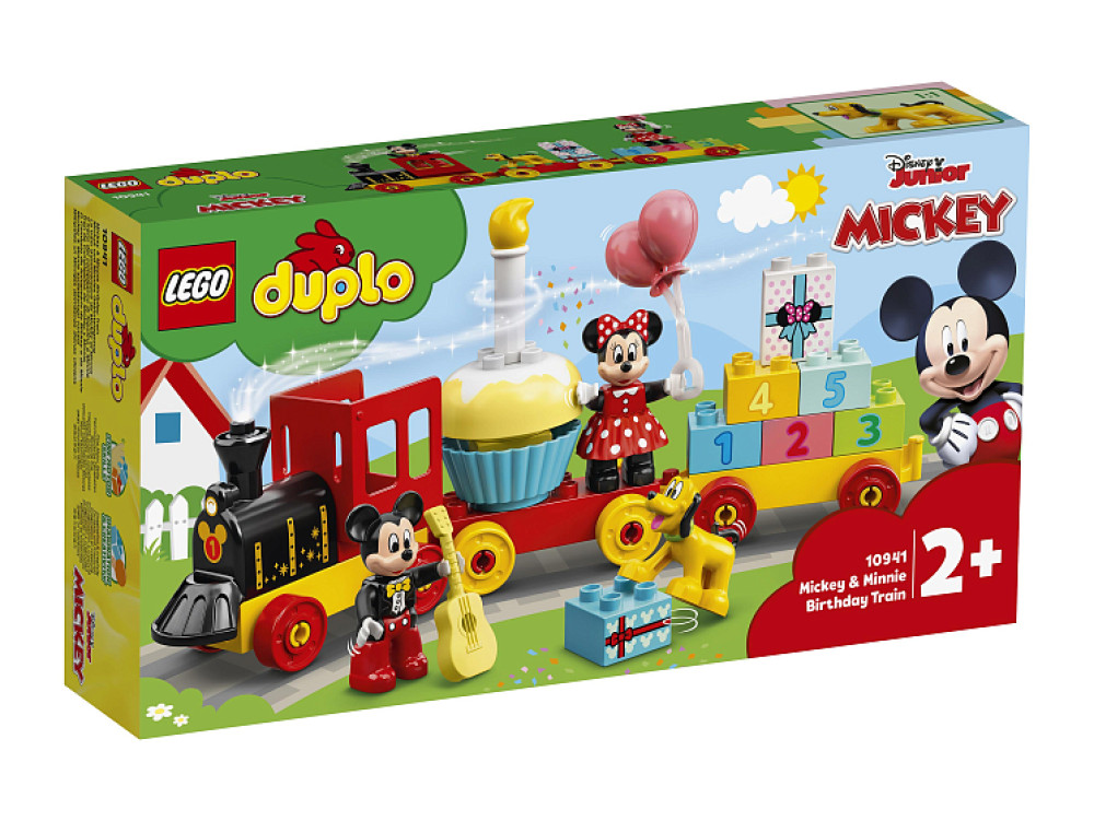 С конструктором LEGO DUPLO Disney 10941 «Праздничный поезд Микки и Минни» ваш малыш проведет время весело и увлекательно. Он найдет здесь своих любимых персонажей Disney. Вместе с Минни, Микки и Плуто, ребенок будет учить цифры, а также развивать мелкую моторику и воображение. Набор представляет собой разноцветный поезд, на котором установлены кубики с цифрами, праздничный торт и другие яркие и красивые атрибуты. Чтобы Минни и Плуто было веселее, Микки взял в руки гитару, на которой он исполнит замечательные песни. Конструктор LEGO DUPLO станет хорошим подарком детям от 2 лет на Новый год или день рождения. Детали конструктора можно устанавливать на поезд в каком угодно порядке. Крупные детали конструктора удобны для маленьких детских ручек. Сочетается с другими наборами LEGO DUPLO. В руку Минни или Микки можно вложить воздушные шарики из набора. В комплекте: 22 детали. Фигурка Микки Мауса. Фигурка Минни Маус. Фигурка Плуто.